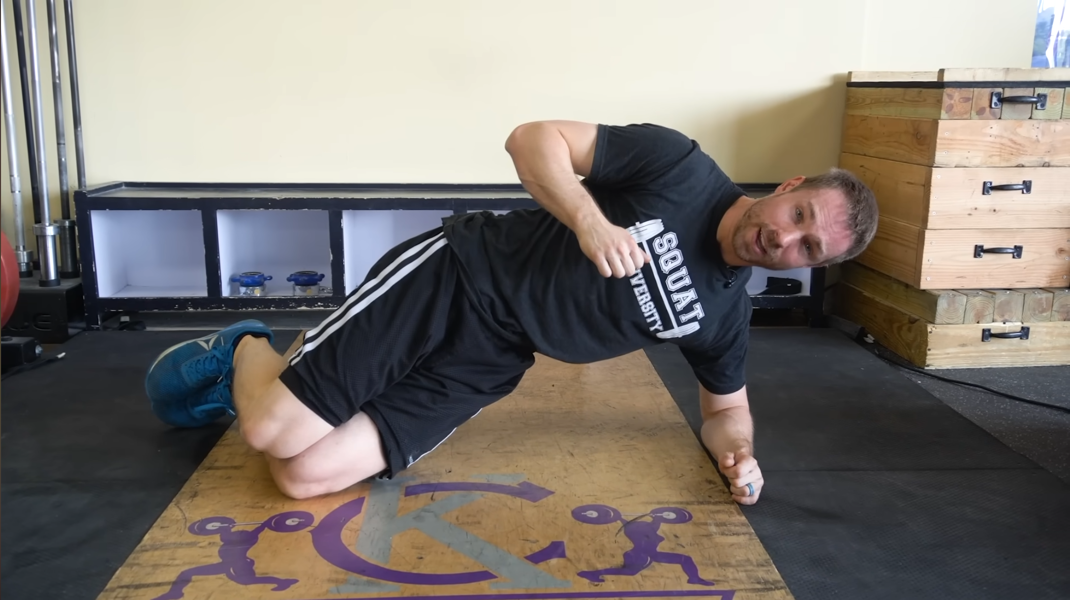Whichever "end" is picked, hold it for 10 seconds, then return to start. Do 6 reps on each side.